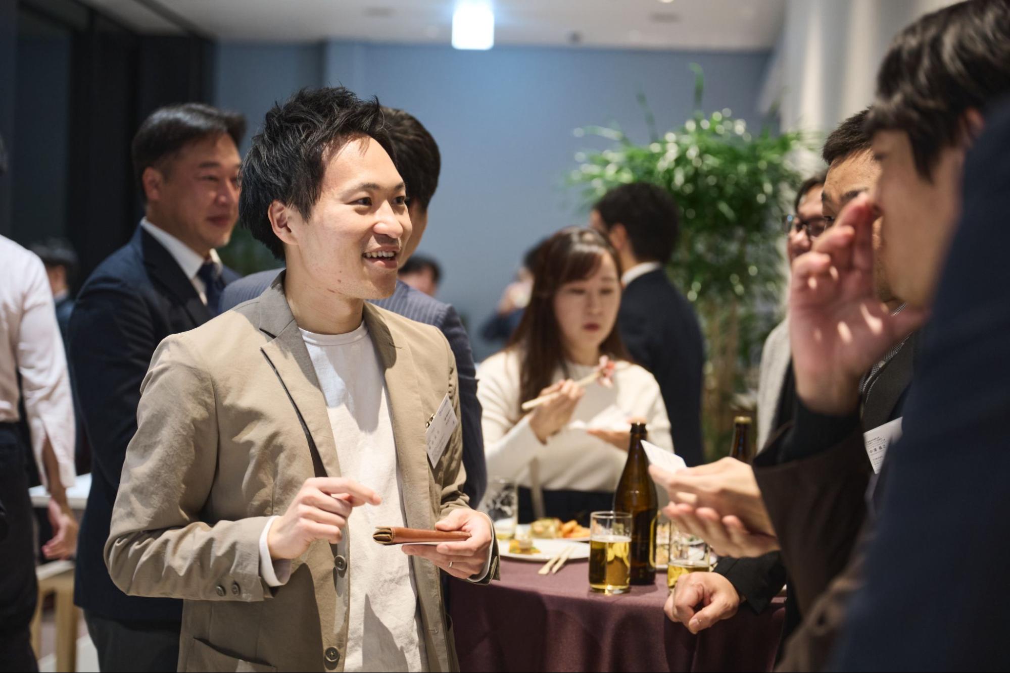 APIファースト共創宣言のあとに行われた懇親会では、リラックスした雰囲気の中で自由に意見を交換し、新たなつながりを築く場となりました。